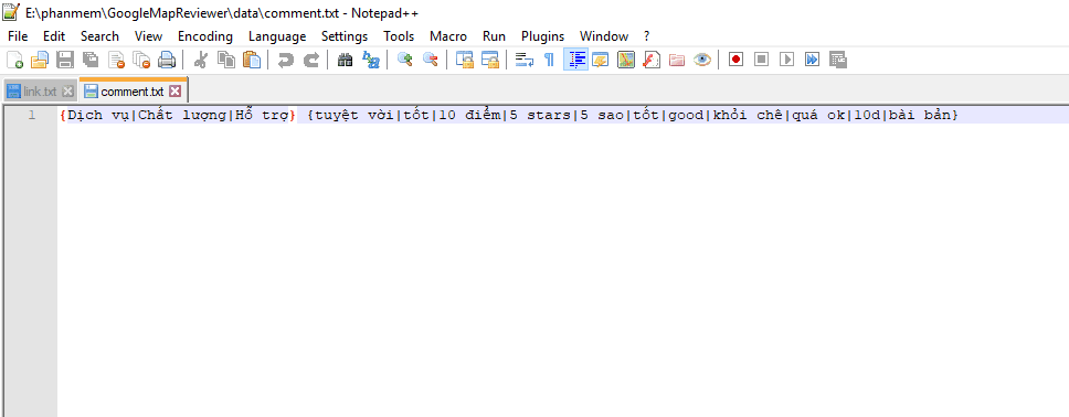 Lập file text (dạng txt) chứa nội dung bình luận như hình. Phần mềm sẽ tự động thay đổi nội dung bình luận để ít bị trùng lặp.